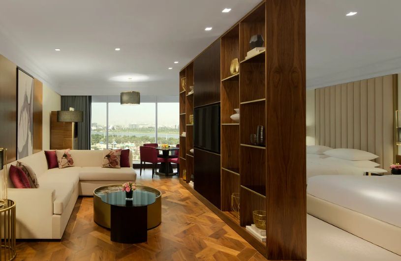 Grand Hyatt Dubai stands out as one of the city’s largest and most stylish resorts, offering a unique balance of city convenience and resort-style relaxation. Located minutes from Downtown and Dubai Creek, it’s a top pick for travellers who want both comfort and convenience.